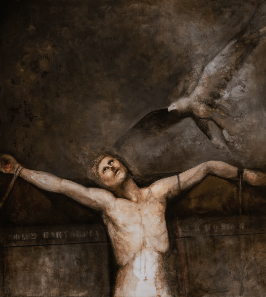 #ContemporaryArt #Painting #FigurativeArt #Crucifixion #HumanCondition #ExistentialArt #SymbolicArt #ArtCurator #MuseumPractice #ArtResearch #GiorgosIoannidis #ARTPathos